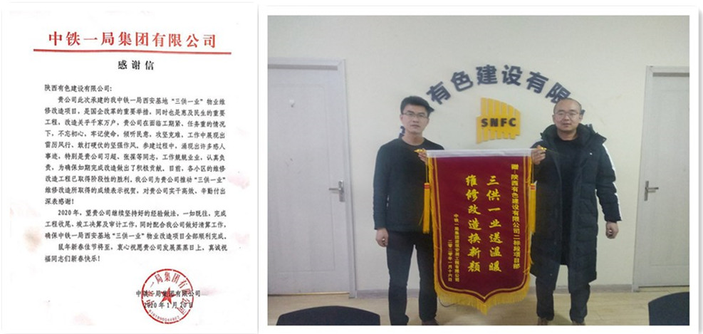 近日,公司收到建設(shè)單位中鐵一局集團有限公司發(fā)來的感謝信,感謝公司在“三供一業(yè)”物業(yè)維修改造項目實施中,面對時間緊、任務(wù)重的情況,項目部人員攻堅克難、雷厲風(fēng)行、實干高效、敢打硬仗,順利完成各小區(qū)的維修改造工程,取得了階段性的勝利,希望公司再接再厲,一如既往堅持好的經(jīng)驗做法,確保所有工作全部順利完成。