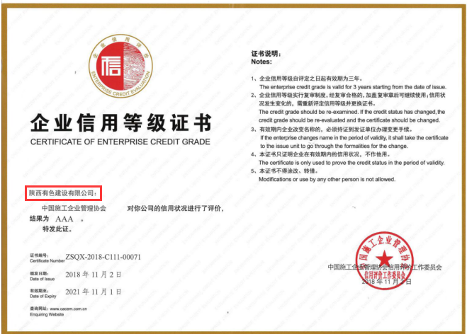 近日,中國(guó)施工企業(yè)管理協(xié)會(huì)印發(fā)了《關(guān)于公布2018年度工程建設(shè)企業(yè)社會(huì)信用評(píng)價(jià)結(jié)果的通知》(中施企協(xié)字〔2018〕57號(hào)),陜西有色建設(shè)有限公司被評(píng)為“2018年度工程建設(shè)企業(yè)社會(huì)信用評(píng)價(jià)AAA級(jí)信用企業(yè)”。這是繼公司連續(xù)榮獲省建協(xié)“AAA”信用評(píng)級(jí)后,獲得的又一殊榮。