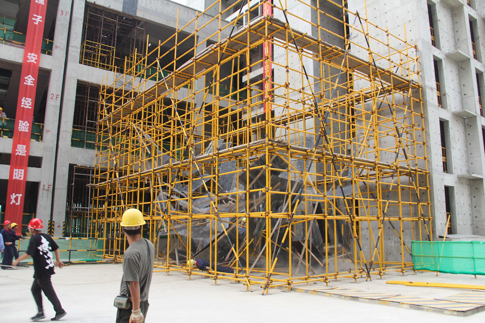 為確保此次演練圓滿完成,針對建筑業(yè)易發(fā)生的安全隱患,公司選定了高架支模坍塌演練科目。為貼近實際,并能夠反映事故發(fā)生后應(yīng)急響應(yīng)及救援的真實效果,生產(chǎn)運行部前期編制了專項應(yīng)急預(yù)案,不斷進(jìn)行現(xiàn)場排演,完善不足,多次修訂演練腳本,最終確定了切實可行的演練方案。