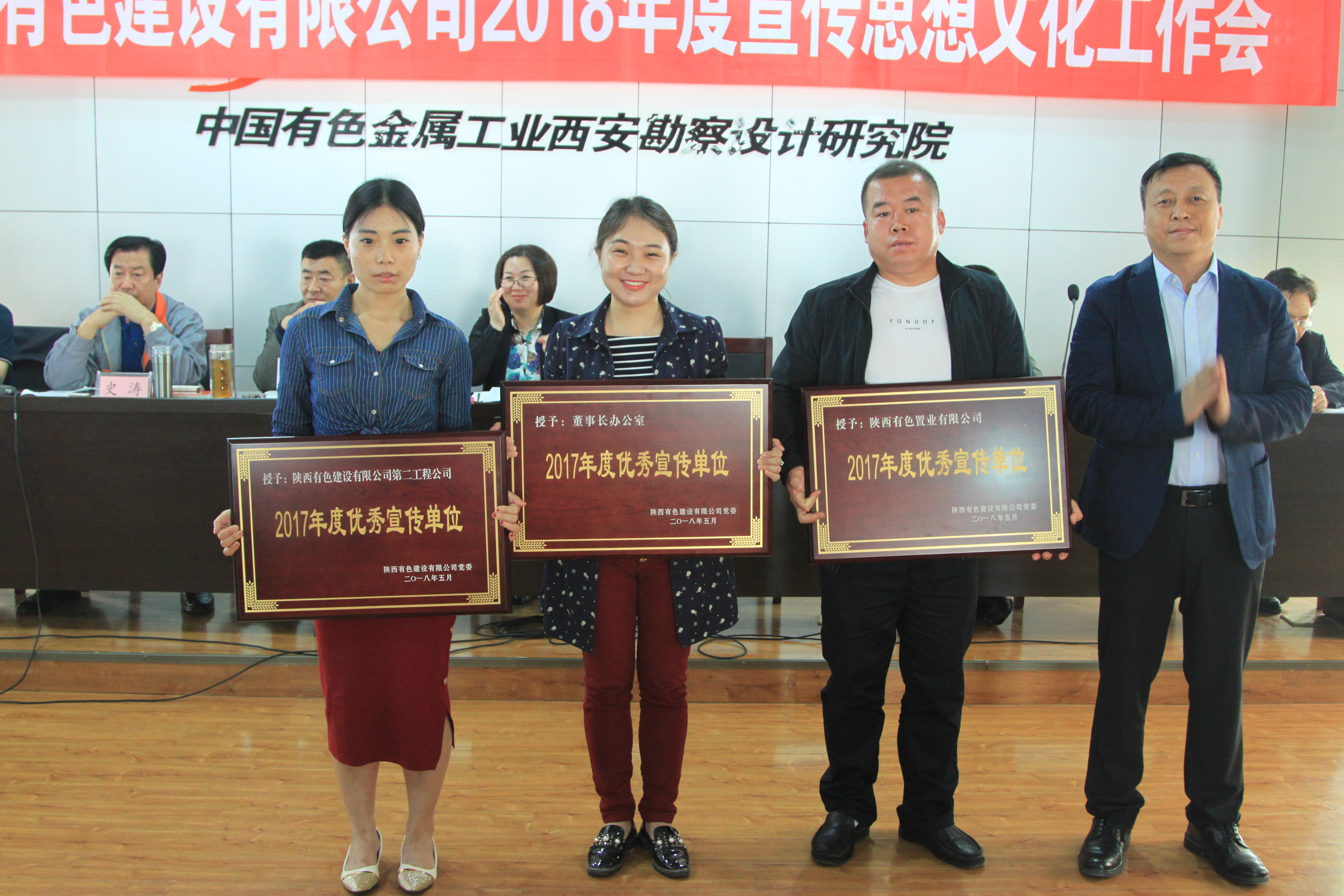 首先,黨群工作部主任段鑫總結(jié)了2017年度各單位及通訊員的投稿情況,匯報了公司意識形態(tài)陣地的管轄分布情況,希望各陣地責任人切實負起責任,認真做好維護和管理工作,確保公司意識形態(tài)陣地可管可控。隨后,公司紀委書記、工會主席段曉峰,黨委副書記、總經(jīng)理楊明鈺分別宣讀了公司《2018年度宣傳思想文化工作要點》及《關(guān)于表彰2017年度優(yōu)秀宣傳單位和優(yōu)秀通訊員的決定》。會上授予,第二工程公司、董事長辦公室、有色置業(yè)“2017年度優(yōu)秀宣傳單位”榮譽稱號;授予徐曼恬、何明明、姚黛茜等9名同志“2017年度優(yōu)秀通訊員”榮譽稱號。