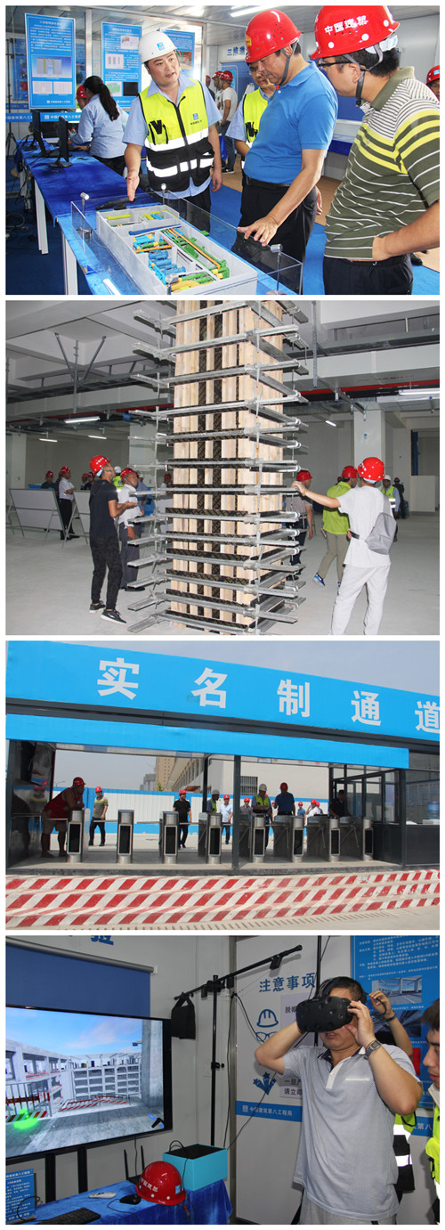 觀摩人員先后參觀了辦公生活區(qū)、安全體驗區(qū)、“互聯(lián)網(wǎng)+”體驗中心、BIM+VR+3D打印大數(shù)據(jù)中心和生產(chǎn)區(qū)。其中:云筑網(wǎng)建筑工人實名制管理平臺、“互聯(lián)網(wǎng)+質(zhì)量/安全/物資”展示、BIM深化設(shè)計、VR安全教育體驗、3D打印建筑模型、AR圖紙識別技術(shù)、方圓扣自鎖模板、鋼筋綁扎定位、定型化工具式通道等施工亮點引人關(guān)注。