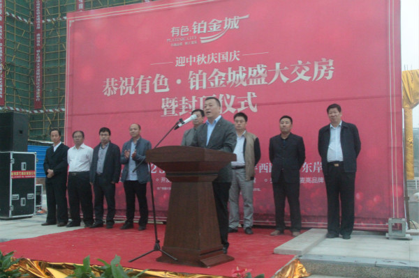 9月30日,由有色置業(yè)開發(fā)、有色陜建承建的有色鉑金城迎來了34、35、43#樓交房暨33、44#樓盛大封頂儀式。戶縣濱河新區(qū)管理辦公室、陜西有色建設有限公司、陜西有色萬通建材有限公司、陜西有色置業(yè)有限公司相關領導,有色鉑金城各參建單位及新老客戶蒞臨會場,共襄盛舉,活動現(xiàn)場禮炮齊鳴,鑼鼓喧天,氣氛熱烈濃郁。