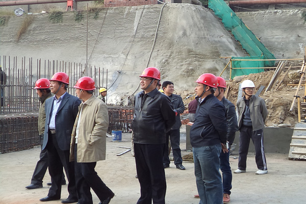 秦西社主席一行深入施工現(xiàn)場實地考察,詳細了解工程進展情況和現(xiàn)場運行狀況,隨后聽取了第一工程公司負責人袁建飛、項目經理呂紅輝就項目生產等方面的情況匯報。