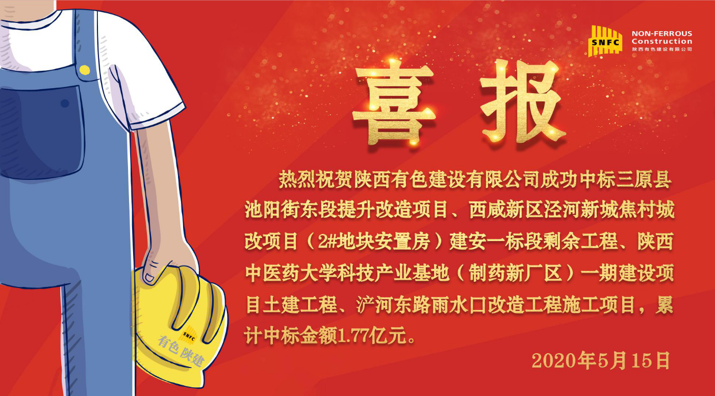 三原縣池陽街東段提升改造項(xiàng)目、西咸新區(qū)涇河新城焦村城改項(xiàng)目(2#地塊安置房)建安一標(biāo)段剩余工程、陜西中醫(yī)藥大學(xué)科技產(chǎn)業(yè)基地(制藥新廠區(qū))一期建設(shè)項(xiàng)目土建工程、浐河?xùn)|路雨水口改造工程施工項(xiàng)目接連中標(biāo),累計中標(biāo)金額1.77億元。