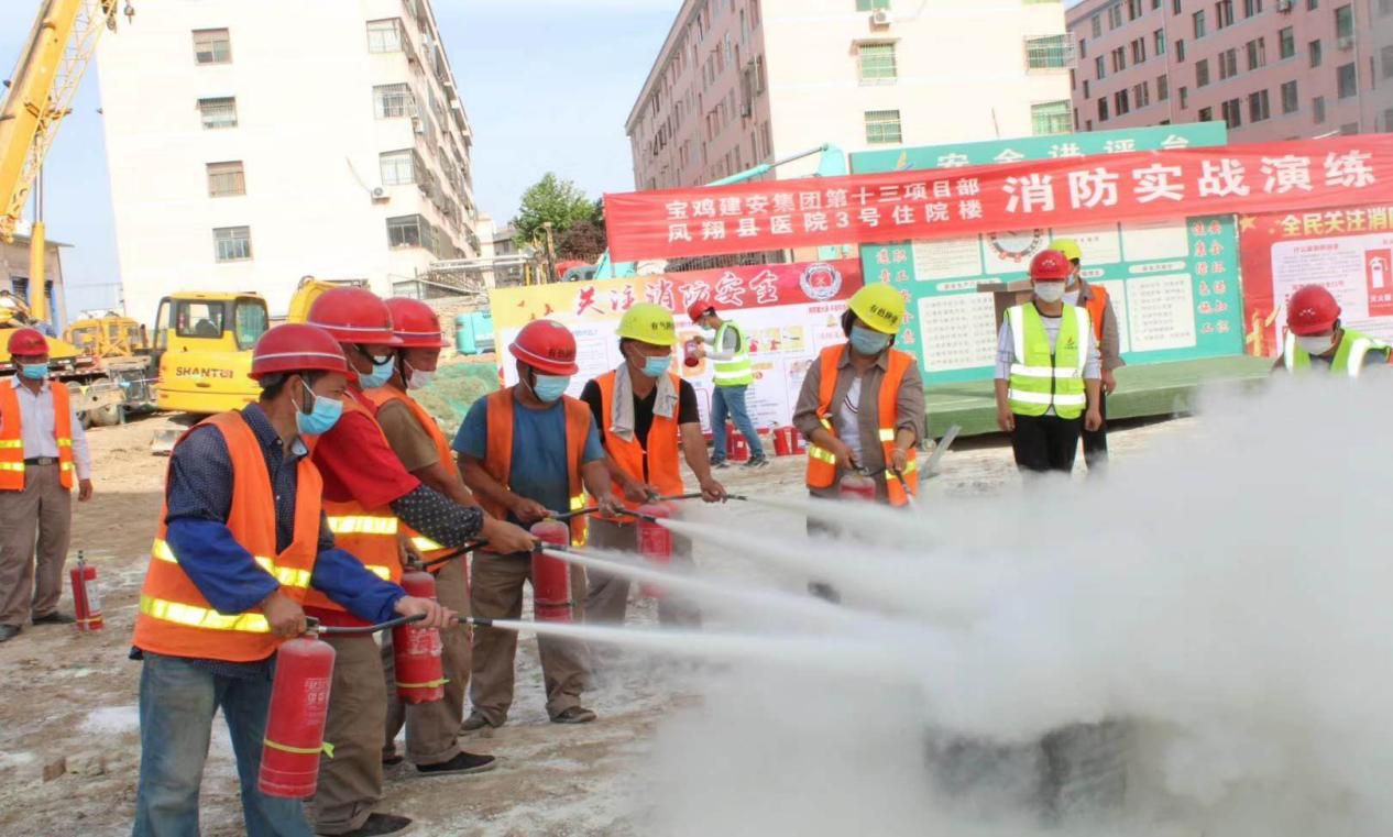 2020年6月是全國第19個“安全生產(chǎn)月”,為進一步加強項目安全管理工作,強化消防安全意識,認真貫徹”安全第一、預防為主、綜合治理”的方針,全面落實安全生產(chǎn)主體責任,牢固樹立保安全就是保穩(wěn)定、保安全就是促發(fā)展的重要思想,有色陜建第二工程公司在鳳翔縣醫(yī)院項目部組織開展模擬消防安全演練活動。本次演練以模擬火災發(fā)生后的組織滅火救援為主要內(nèi)容,鳳翔縣消防支隊、鳳翔縣縣公安局、縣醫(yī)院醫(yī)護人員、公司項目全體參建人員,項目其他建設單位300多人參加了此次演練活動。