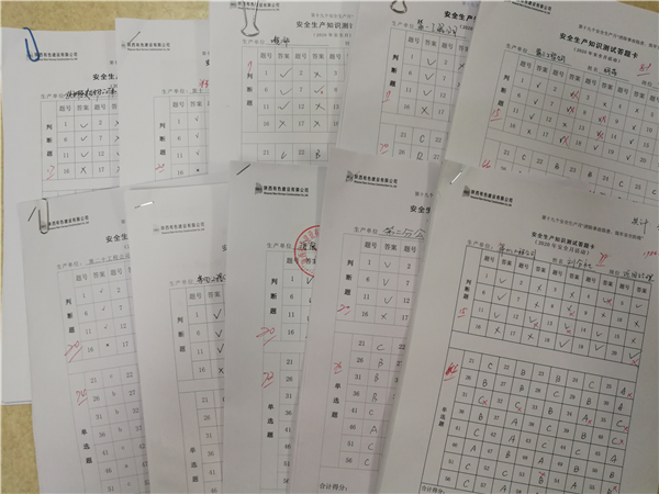 舉辦安全生產(chǎn)知識(shí)測(cè)試答題活動(dòng)。在“安全生產(chǎn)月”活動(dòng)中,各項(xiàng)目紛紛組織開展“消除事故隱患、筑牢安全防線”安全生產(chǎn)知識(shí)測(cè)試,營(yíng)造了“人人學(xué)安全,人人懂安全”的良好氛圍,切實(shí)有效提升了項(xiàng)目一線職工的安全意識(shí),強(qiáng)化了安全技能,為公司健康平穩(wěn)發(fā)展筑牢“安全墻”。
